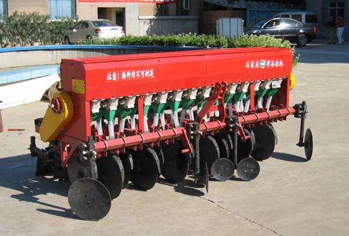 2BFT-14播種機適用于平原、丘陵的中小地塊條播小麥、大豆、并可兼播高粱、等作物。播種的同時可施下化肥。該系列播種機可與11-13.2KW輪式拖拉機配套,用三點懸掛裝置與拖拉機掛結(jié),具有機動靈活的優(yōu)點。本系列機具采用輕型雙圓盤開溝器,通過性好。本機裝設(shè)有種子倒空裝置、覆土裝置及起壟裝置。一次作業(yè)可完成覆輪轍、起壟、開溝、施肥、播種、覆土、鎮(zhèn)壓工序。